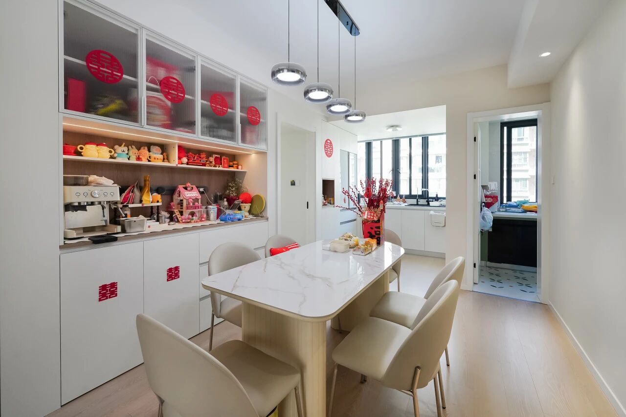 屋主小夫妻开朗、直爽且热情,喜欢简约、温馨的居家环境,在生活中奉行“断舍离”的理念,不想家里堆满“无用”的东西来占满空间。通过了解客户的品味和喜好,设计师为他们量身定制了现代简约风的设计。婚房中的每一个细节都自带温暖气息,奶油调的恬淡与治愈,也让这个幸福的小家庭更加浪漫优雅,也希望我们的业主能够在新居中美满幸福的享受生活。